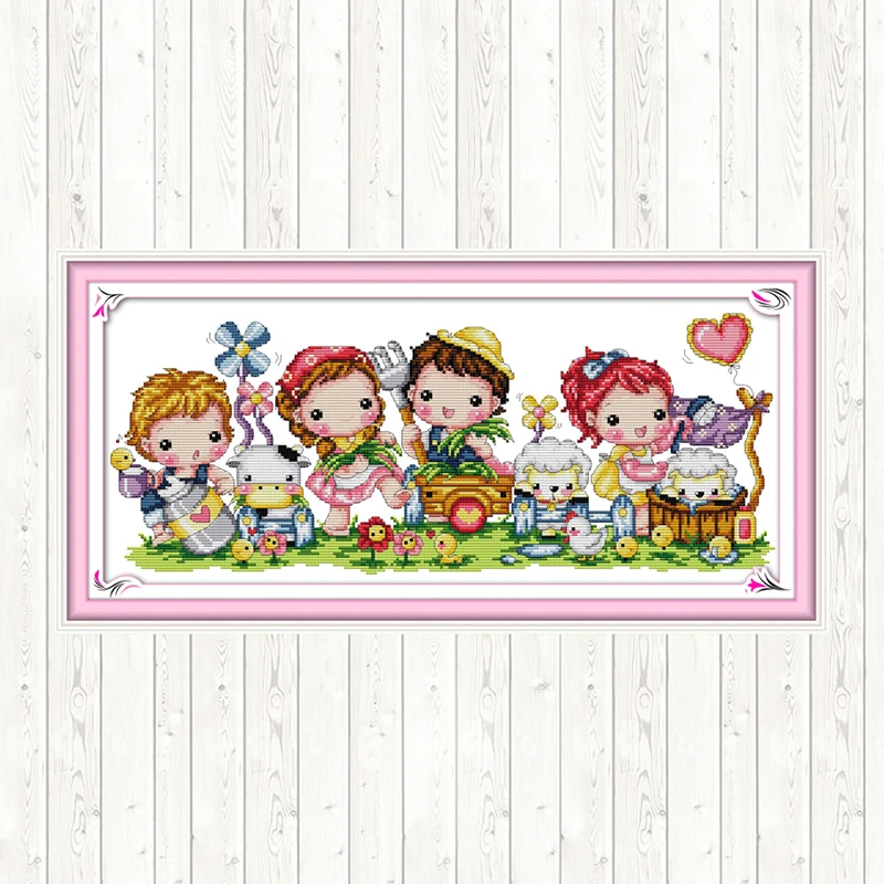 Happy Farm DIY Needlework Crafts DMC Cotton Thread Printed Canvas 14CT 11CT Counted Stamped Handmade Cross Stitch Embroidery Kit