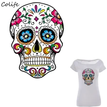 | Mexican Sugar Skull Patches Print On T-Shirt Clothes Decoration DIY Accessory Washable New Design Patches For Clothing 26x19cm |