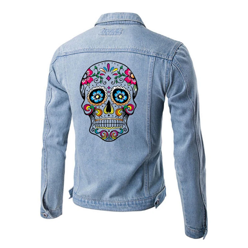 Mexican Sugar Skull Patches Print On T-Shirt Clothes Decoration DIY Accessory Washable New Design Patches For Clothing 26x19cm